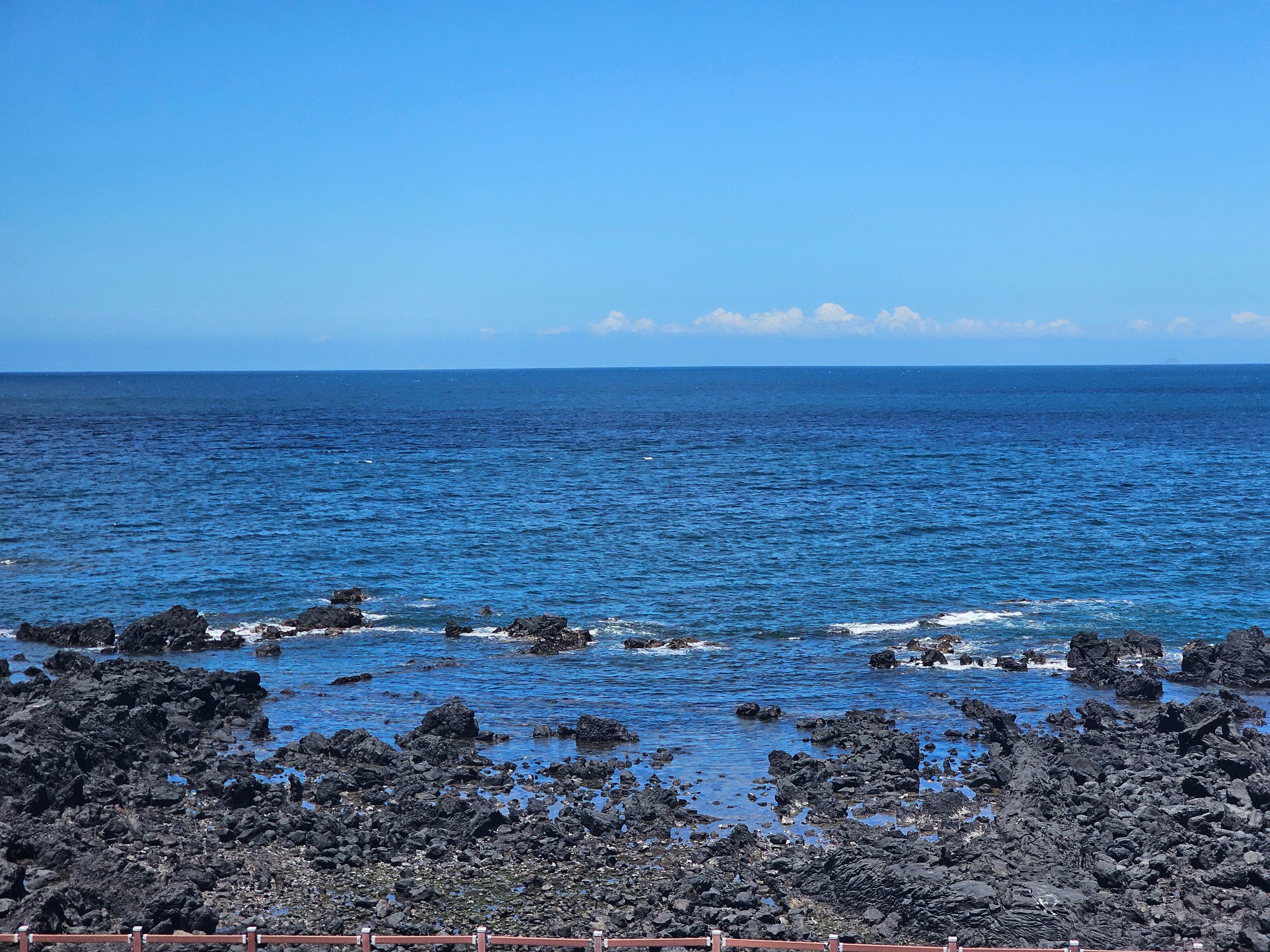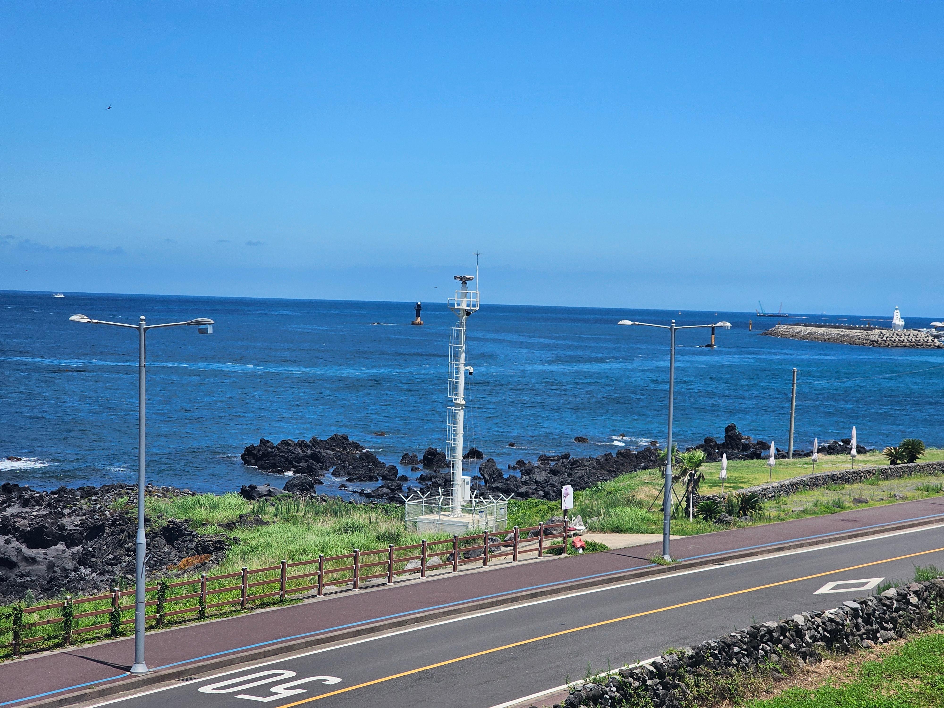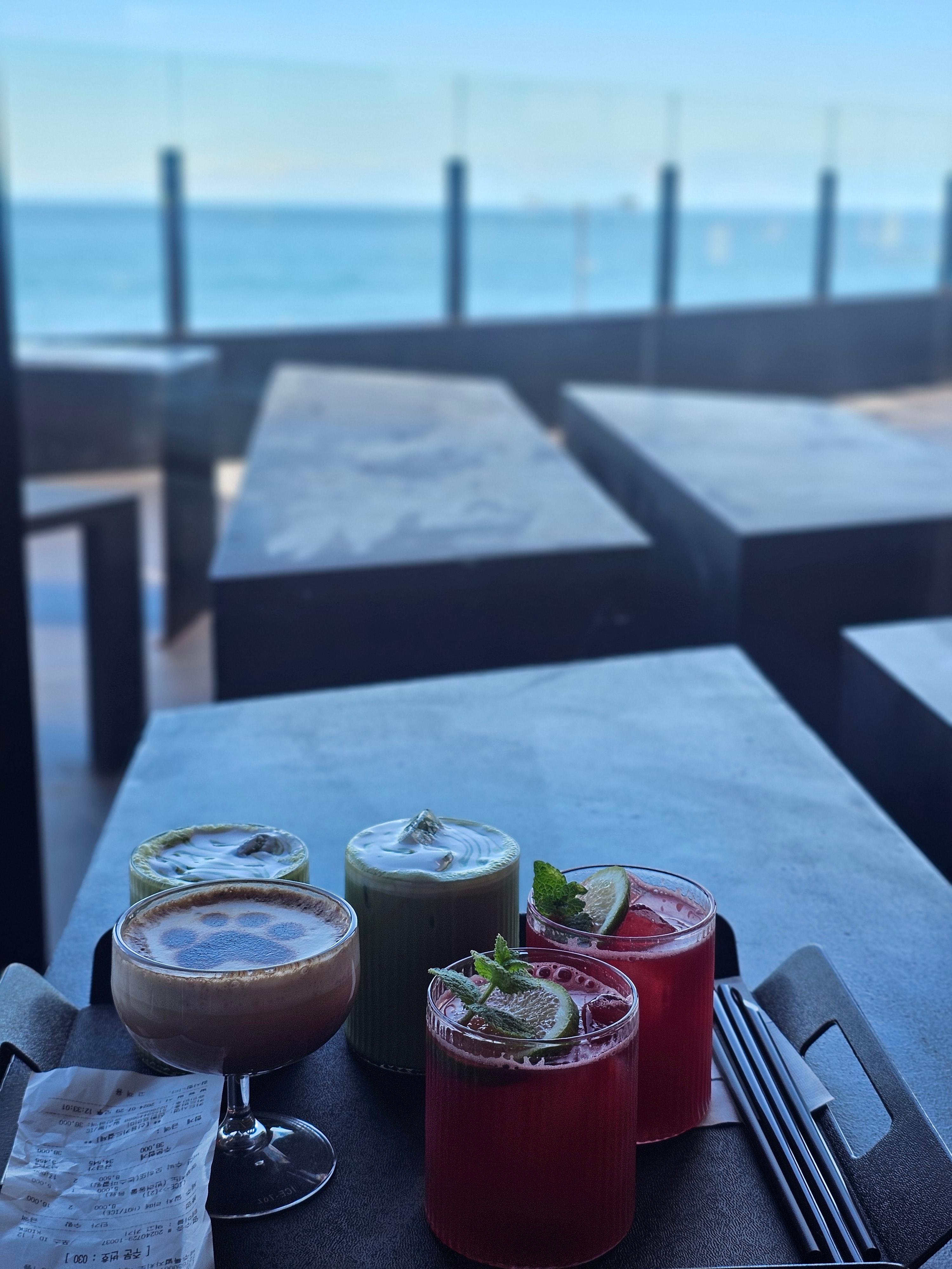 사진을 조금만 확대해서 찍어도 바다 바로앞에서 찍은 사진 마냥, 푸른 하늘과 아름다운 바다가 눈 앞에 있는 듯한 광경에 제주 공항 가기 전, 마지막 코스로 마지막으로 제주 바다를 감상할 수 있는 카페에요.